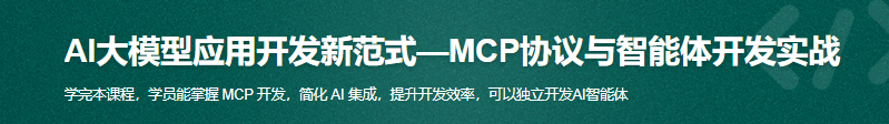 适合 AI 开发爱好者、工程师及想转型 AI 领域者。需具备Python基础编程知识,目标掌握 MCP 开发、大模型集成等,突破 AI 应用开发瓶颈,提升职场竞争力。