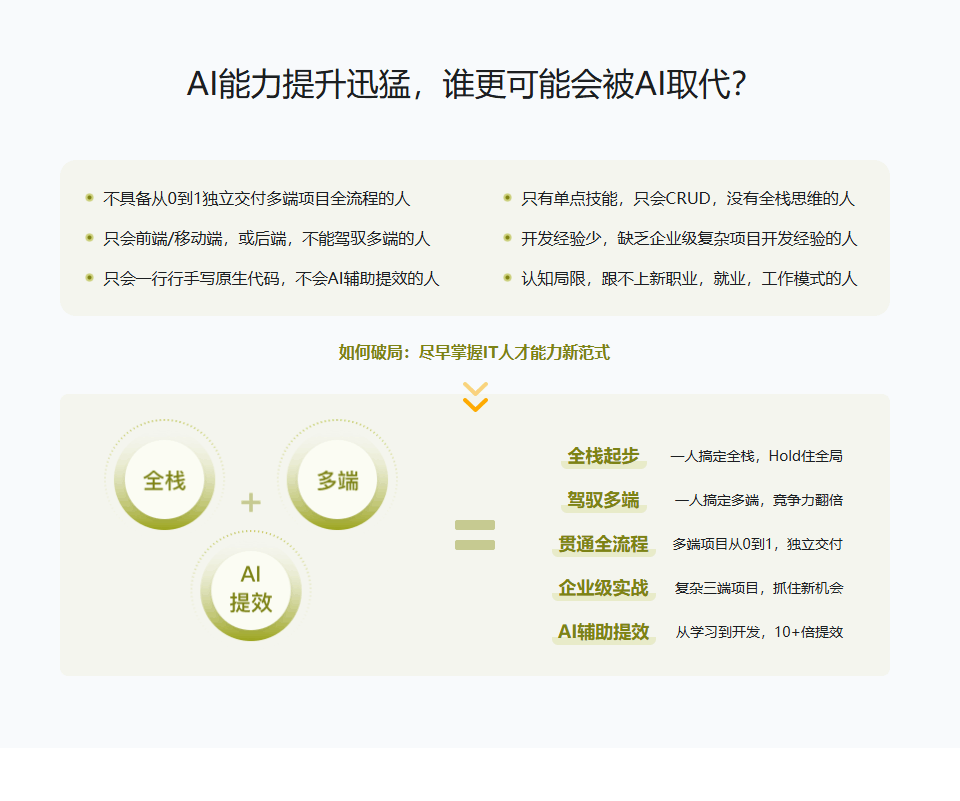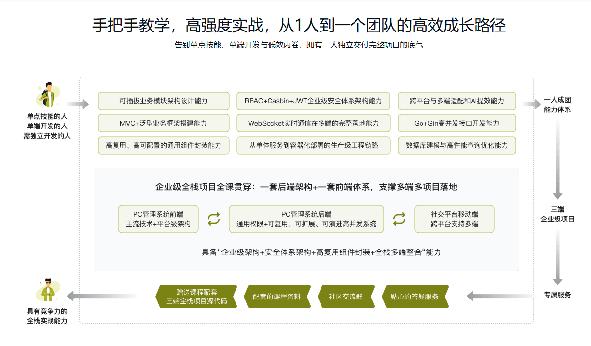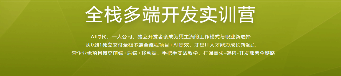 全栈多端开发实训营,从0到1独立交付全栈多端全流程项目+AI提效,前端+后端+移动端企业级项目实战教学,打通需求-架构-开发部署全链路。
