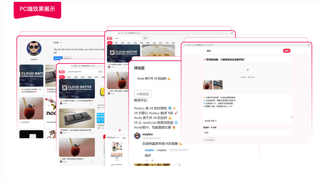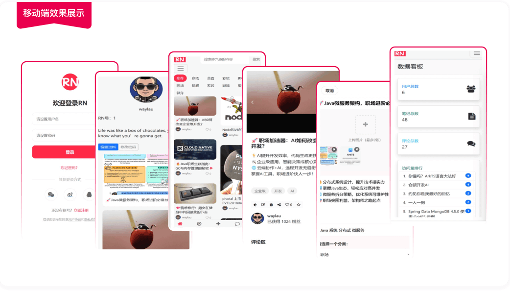 “仿小红书” 项目全程贯穿,PC + 移动端全栈落地